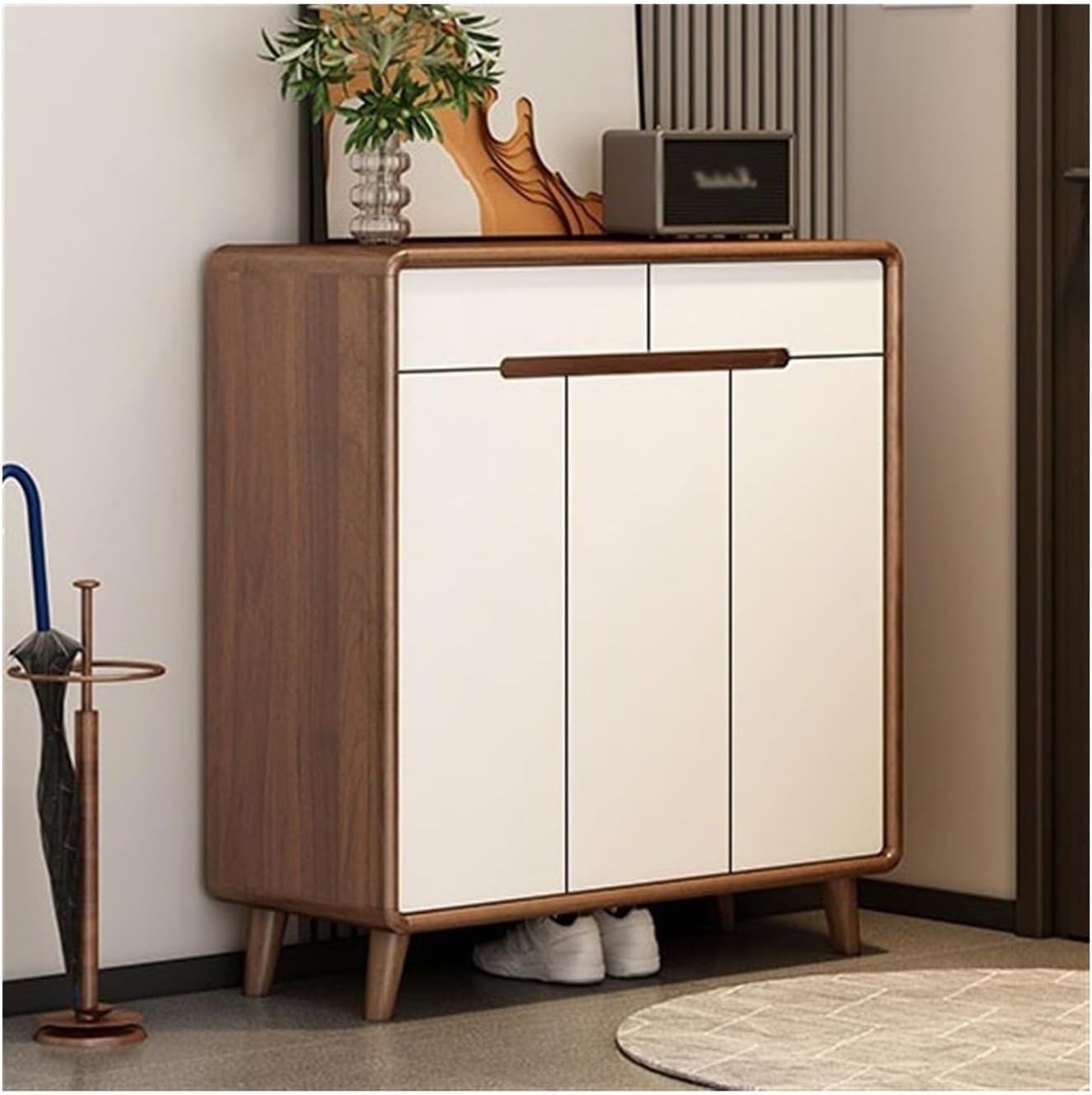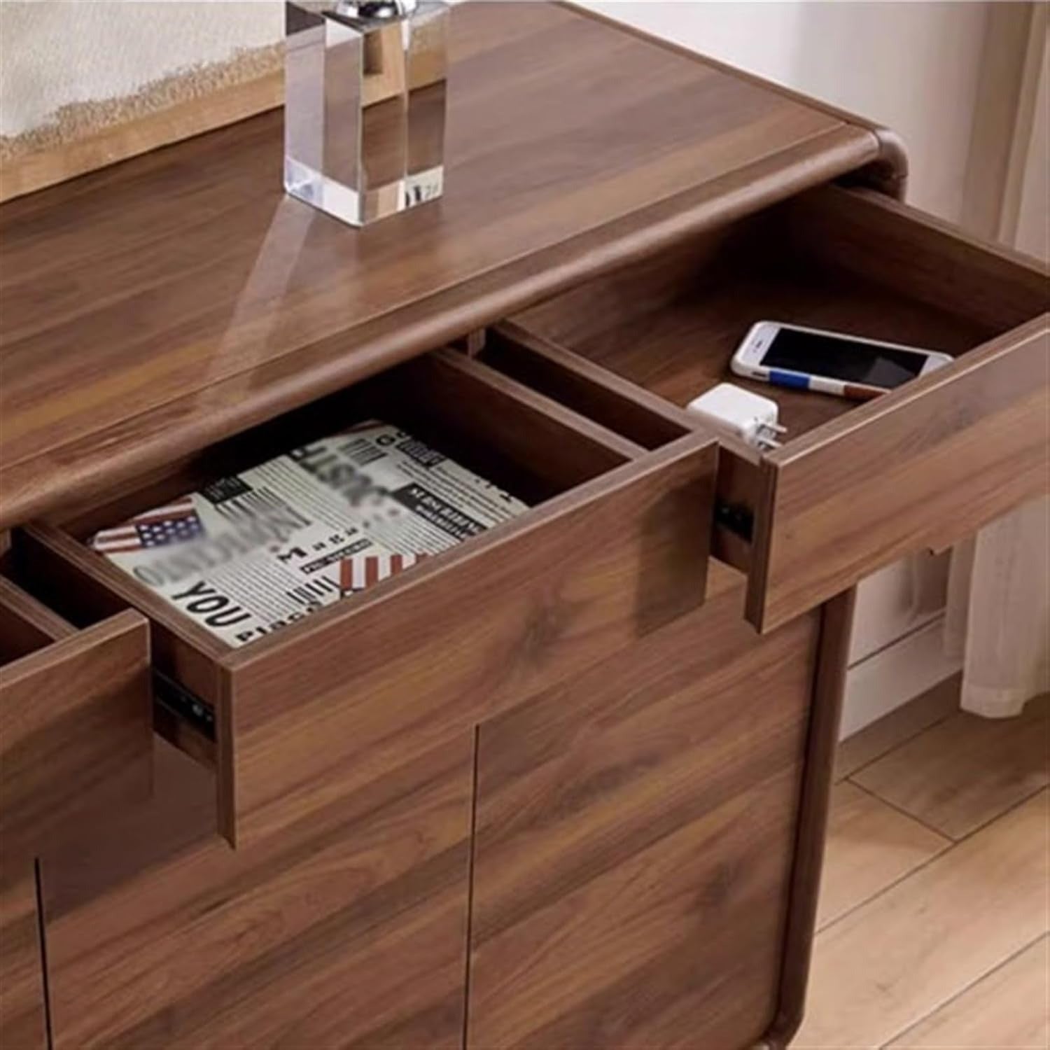 Son design associe la chaleur du bois noyer à l’élégance du blanc laqué brillant, offrant un rendu à la fois luxueux et minimaliste.